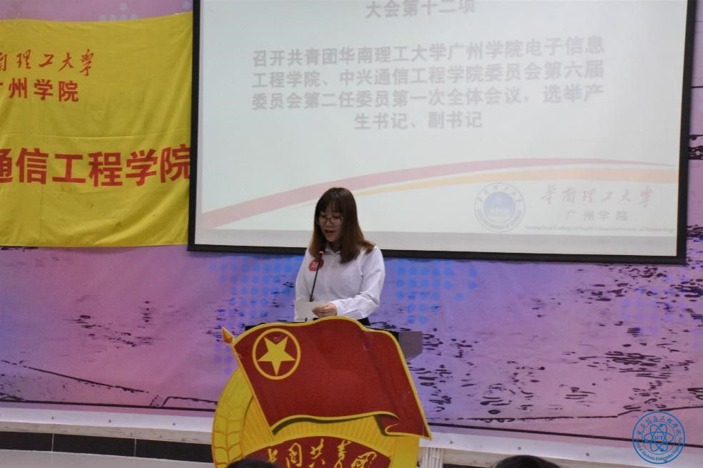 经过短暂的委员第一次全体会议后,由杨多佳同学宣布共青团华南理工大学广州学院伟德国际betvlctor1946、中兴通信工程学院委员会第六届委员会第二任委员第一次全体会议选举结果:陈诗萌、乔艳、谢丽任教师兼职副书记;许莘杰、杨多佳任学生兼职副书记。