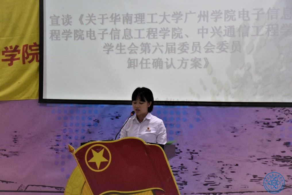 伟德国际betvlctor1946学生代表冯美婷同学作华南理工大学广州学院伟德国际betvlctor1946、中兴通信工程学院学生会第六届委员卸任确认方案。