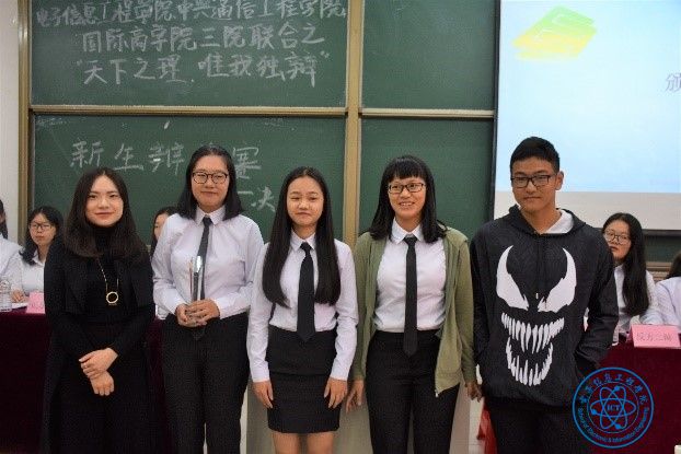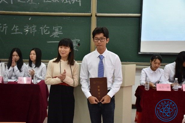 在本次辩论赛的最后,由罗院长为冠军18级双语注会一班颁奖;吴江文老师为亚军18级自动化一班颁奖;张诗雨老师为季军18级自动化二班颁奖;谢丽老师为殿军18级电信二班颁奖。