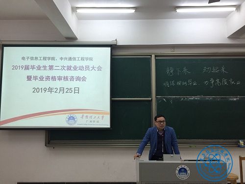 本网讯(记者 蔡容华)为促进2019届毕业生更好地进行实习就业,2月25日上午,伟德国际betvlctor1946(含通信工程专业)于伟德国际betvlctor1946A5-108举行了第二次2019届毕业生实习就业动员大会暨毕业资格审核咨询会。学院副院长罗自力、毕业班辅导员、班主任、就业专员及2019届全体毕业生参加了此次大会。