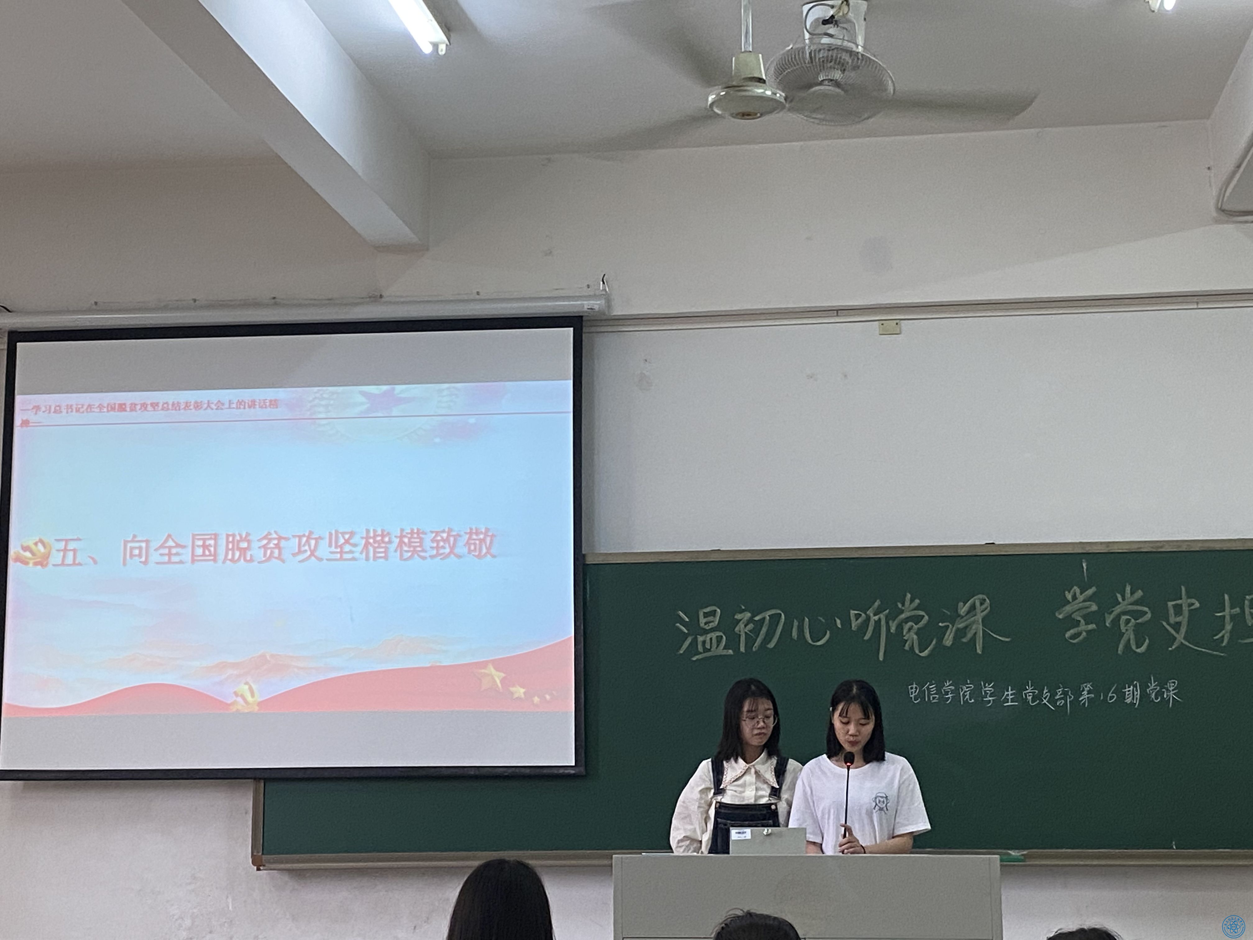 本网讯(记者 张玉蓉)伟德国际betvlctor1946学生联合党支部于2021年4月1日,在A1-205举行了第十六次微党课学习。本次微党课的主题是《取得脱贫攻坚战胜利》的主题报告,主讲人是陈镁思、黄子羡同志,全体学生党员同志和入党积极分子都认真听取此次党课。