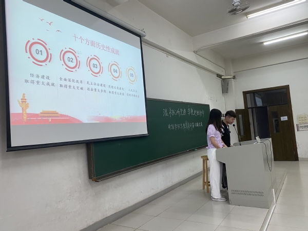 首先由郑潮键同志讲述了中国特色社会主义进入新时代后我国发展的新的历史地位,总书记指出,改革开放之初,我们党发出了走自己的路、建设中国特色社会主义的伟大号召。从那时以来,我们党团结带领全国各族人民不懈奋斗,推动我国经济实力、科技实力、国防实力、综合国力进入世界前列,推动我国国际地位实现前所未有的提升。