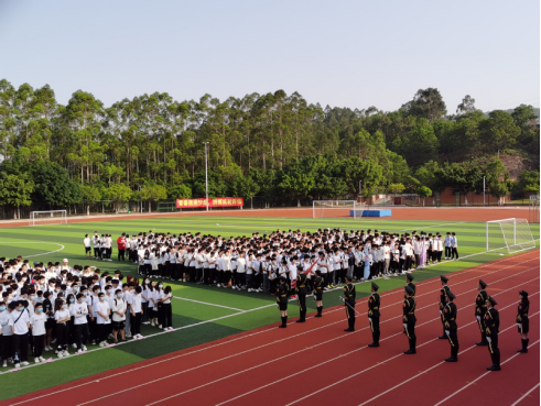 4月12日,伟德国际betvlctor1946/通信工程学院全体师生齐聚田径场,举行升旗仪式暨“青春心向党,党史永铭记”党史学习教育活动。学院党总支书记罗自力,学院辅导员及全院学生参加升旗仪式。