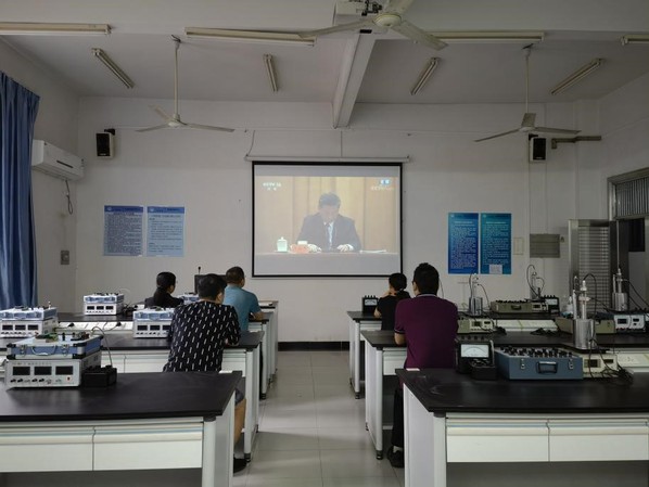 本网讯(记者 张玉蓉)10月9日,纪念辛亥革命110周年大会在北京人民大会堂隆重举行。中共中央总书记、国家主席、中央军委主席习近平出席大会并发表重要讲话。我院各党支部按照要求,组织师生党员以不同方式收听收看纪念大会直播,聆听习近平总书记重要讲话。其中教工第一、第二党支部因部分老师有教学任务,采取自主观看直播或实况录播的方式;教工第三党支部在实验室集中观看了直播;学生联合党支部因部分学生外出实习,采取线上集中学习。