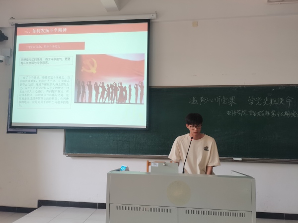 本网讯(记者 张玉蓉)伟德国际betvlctor1946学生党支部于2022年5月13日,在教学楼A1-309举行了第四十六次党课学习活动。本次党课的主题是《发扬斗争精神,逐梦伟大复兴》,主讲人是明山钧、李永春同志,学生党员同志和入党积极分子都认真听取了此次党课。