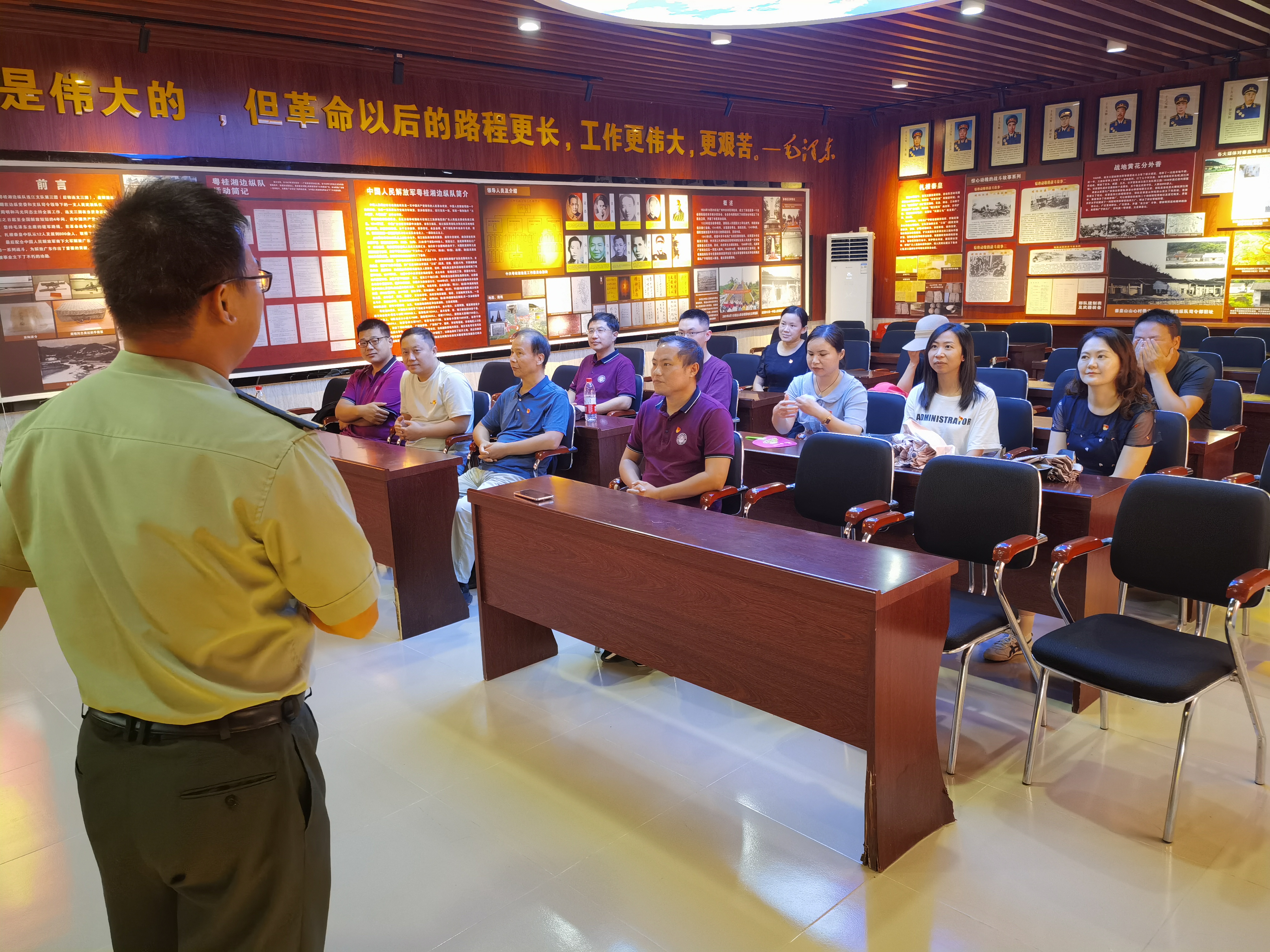 在李木林的带领下,教工一行参观了秦皇山革命根据地事迹展厅。秦皇山曾是粤桂湘边纵队、连江支队和连支三团的常驻地,其中山心村的起振钟公祠更是粤桂湘边纵队司令部旧址。秦皇山革命根据地纪念馆于2019年建成,通过文字、照片、实物等,展示了中国人民解放军粤桂湘边纵队、秦皇山根据地游击队和当地人民的革命斗争事迹。纪念馆还收集了很多历史文物进行展览,驳壳枪、煤油灯、手榴弹、机关枪、大刀等等,简陋的武器装备反映出革命先辈的艰辛。
