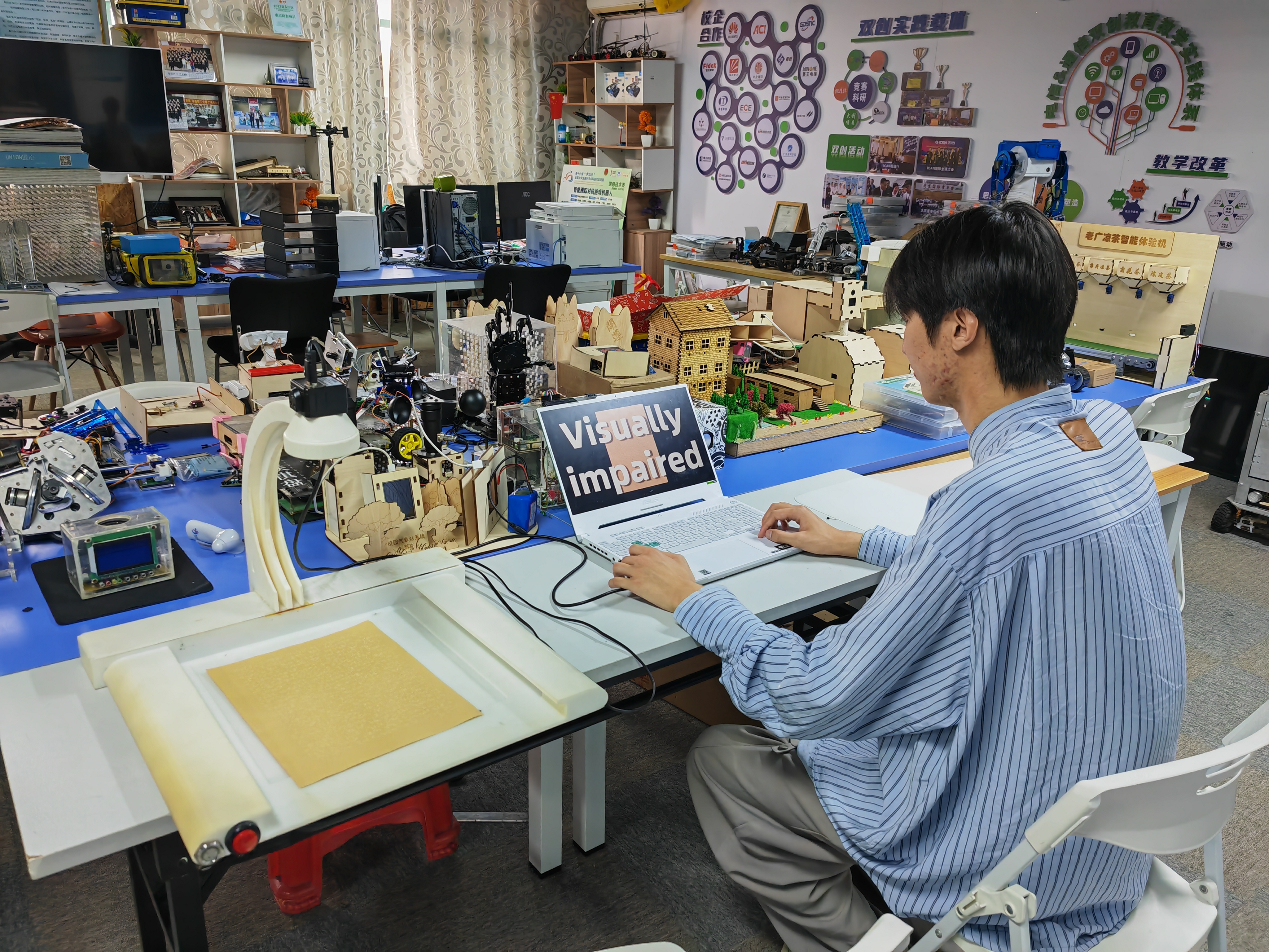 该项目负责人王开来同学在谈及创作初衷时说道:“我国拥有庞大的盲人群体,大量盲人渴望通过教育改变命运,但由于盲人学习资源太少,只能选择按摩相关行业,极大限制了他们的就业范围。本项目基于盲文识别率高、识别速度快、操作便捷、设备性能要求低优点,满足视障者、教学人员和公共服务机构使用的要求,激发盲人学习潜能,让盲人通过努力学习自给自足。”