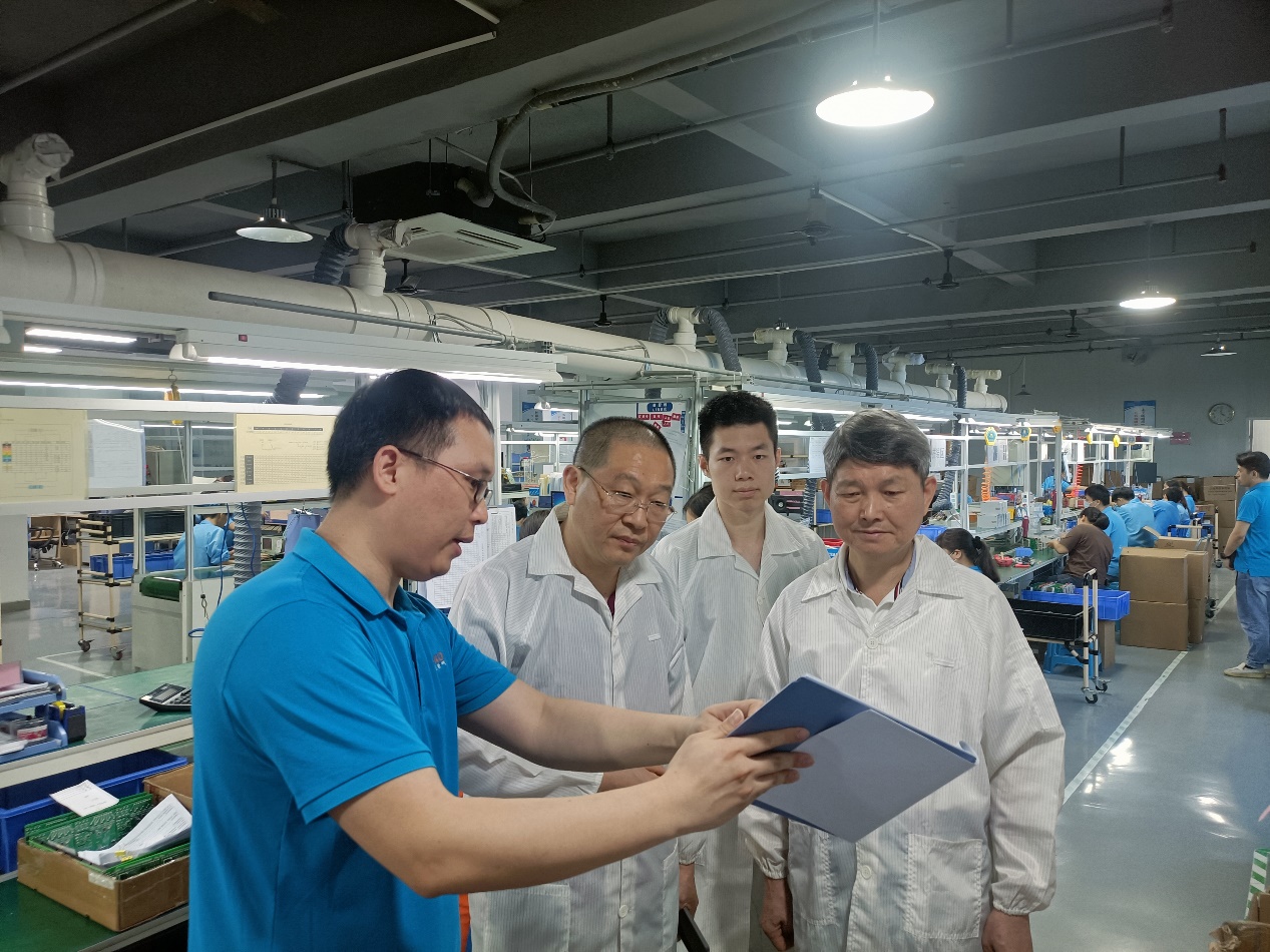 随后,宋晓峰带领姚若河一行对公司生产部进行了参观,并就公司产品从自动化贴片、自动化监测、系统调试到产品组装、封装的流程进行了详细介绍。