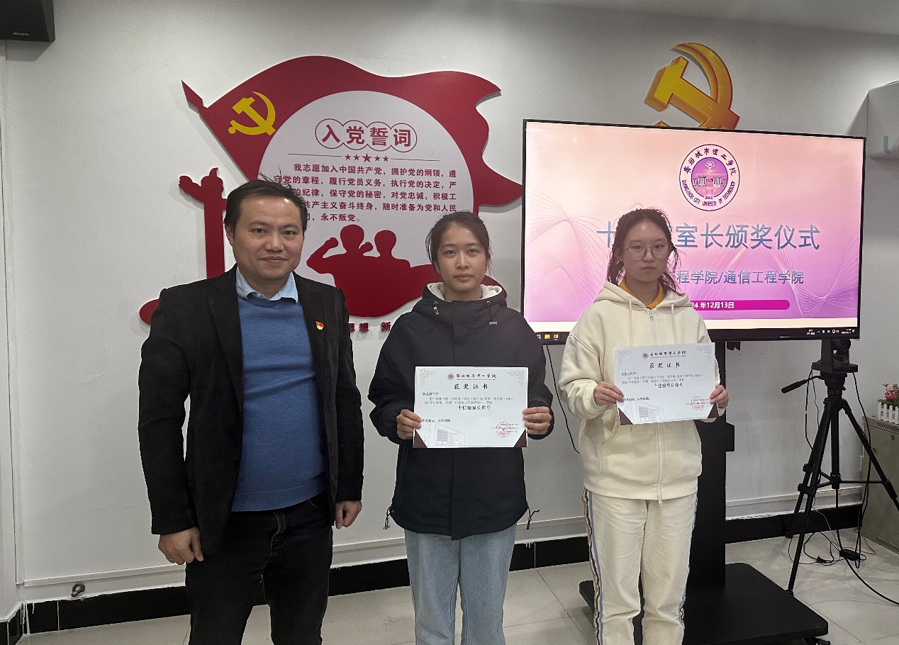随后,罗自力为优秀文明宿舍颁发荣誉证书。获奖同学纷纷表示,将在以后的学习、生活、工作中主动接受同学们的监督,充分发挥“十佳寝室长”模范带头作用,共同营造积极健康的校园文化氛围。