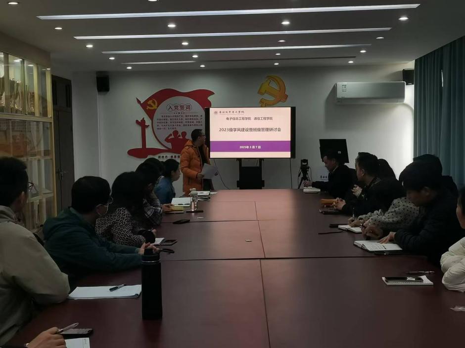 本网讯(记者 周雨轩)加强年级学风建设,提升班级管理水平,给学生创造更优质的学习环境,伟德国际betvlctor1946/通信工程学院3月7日,在B6-503召开2023级学风建设暨班级管理研讨会。学院常务副书记罗自力、学院副院长曹英烈、2023级全体辅导员及班主任参加了此次会议。