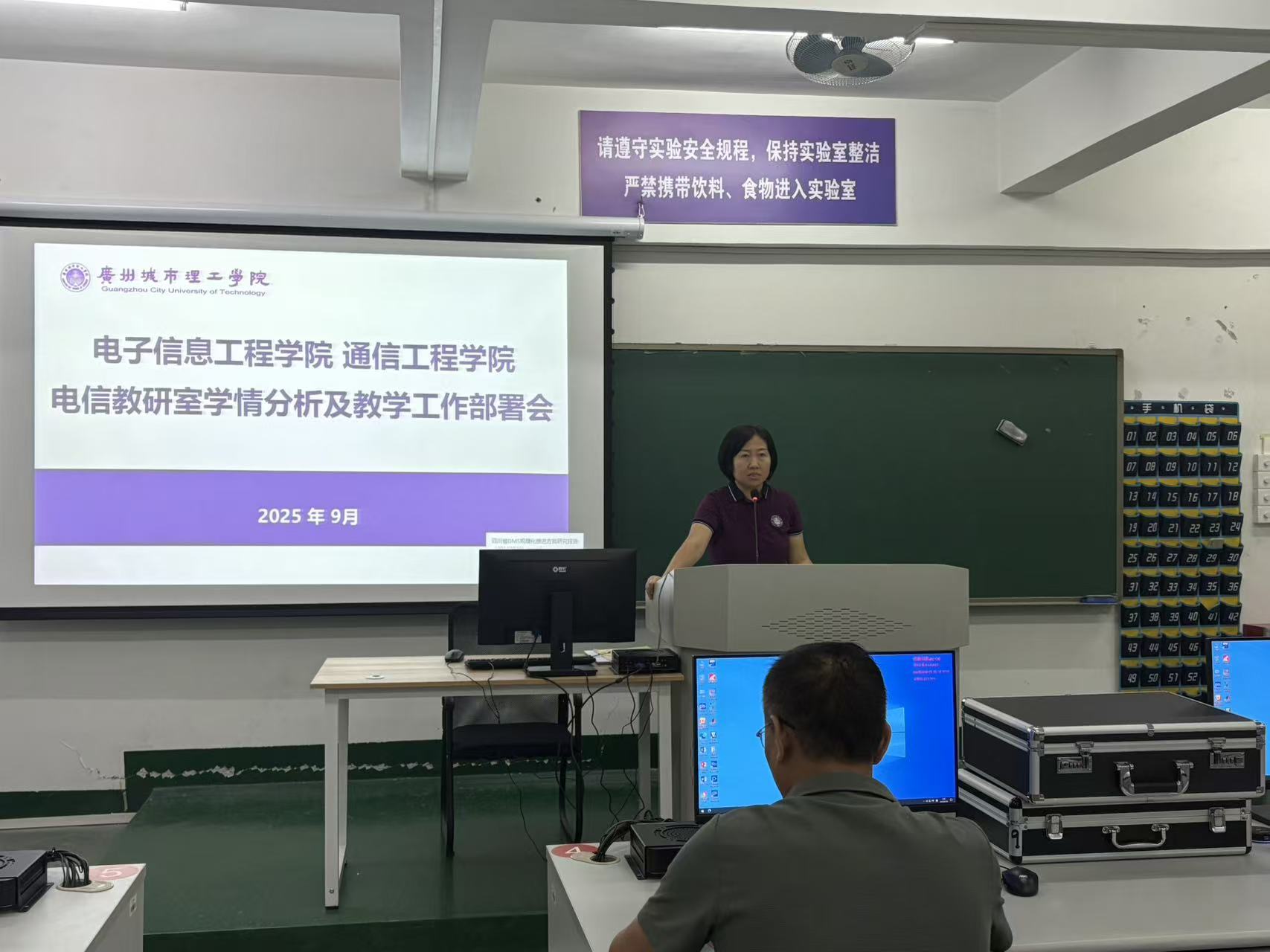 会议伊始,教研室主任曹闹昌首先发表讲话。曹闹昌全面分析了当前电子信息工程专业学生的整体学习状况,指出学生在专业知识掌握、实践能力培养等方面存在的优势与不足。针对这些问题,他提出了一系列具有针对性的教学改进措施,包括优化课程设置、加强实践教学环节等,并对本学期后半段的教学重点工作进行了详细部署,强调要关注每一位学生的成长与发展,提高教学质量。随后,教研室副主任李欣进行补充发言,着重强调了教学过程中师德师风建设的重要性,提醒教师们要时刻保持良好的职业操守,以高尚的道德情操和扎实的学识素养影响学生,为学生树立榜样。